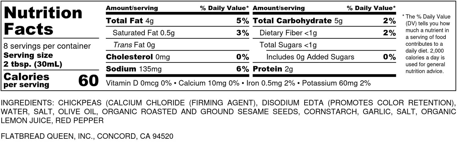 It’s a classic for a reason! This truly universal spread celebrates the humble chickpea; our recipe is no different. We let the simple flavor shine, and only add a bit of fresh lemon juice, fresh garlic, fresh tahini, and olive oil. This vegan, gluten free VIP of spreads is delicious no matter how you use it. Whether its spread over our Bolani flatbreads, add your own spices or ingredients to make your own hummus flavor, or as a complement to your favorite crudite spread or mezze platter, you’ll always reach for another bite.