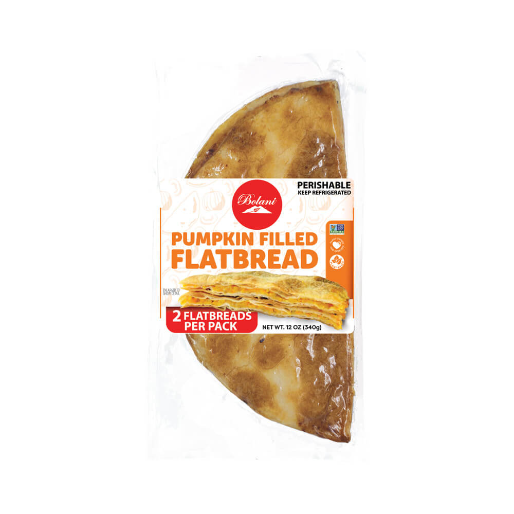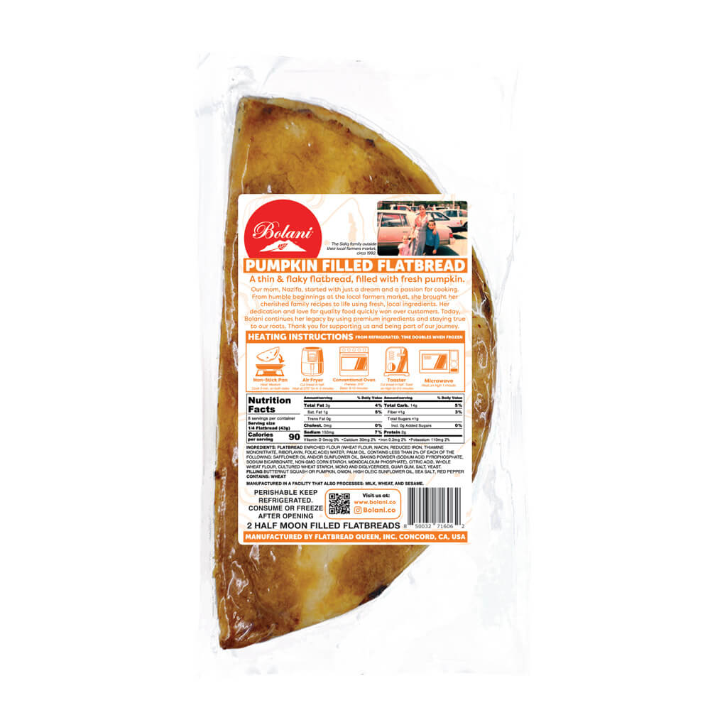 A thin & flaky flatbread, filled with fresh pumpkin.
