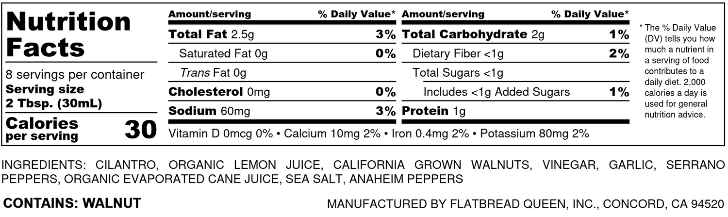 Now 100% Nut Free only lemon juice, and cilantro in our pesto, and that’s it: none of the fillers or oil you find in other products. We let the flavors of our sauces shine by embracing simplicity. Enjoy anywhere you want a burst of freshness and acidity — salad dressings, tossed in pasta, spread on sandwiches, or used to brighten grilled vegetables.